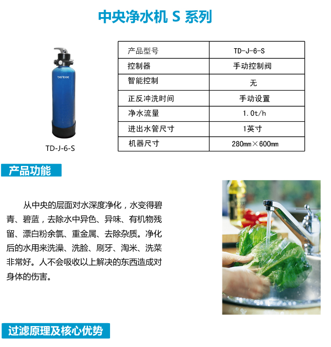 手動中央凈水機(jī)有效去除水中的異色、異味;進(jìn)一步濾除水中微小雜質(zhì)、膠狀體;去除水中的漂白粉余氯、農(nóng)藥、重金屬;保留對人體有益的礦物質(zhì)。使水變得碧清、碧藍(lán),去除對人體有害的物質(zhì)。